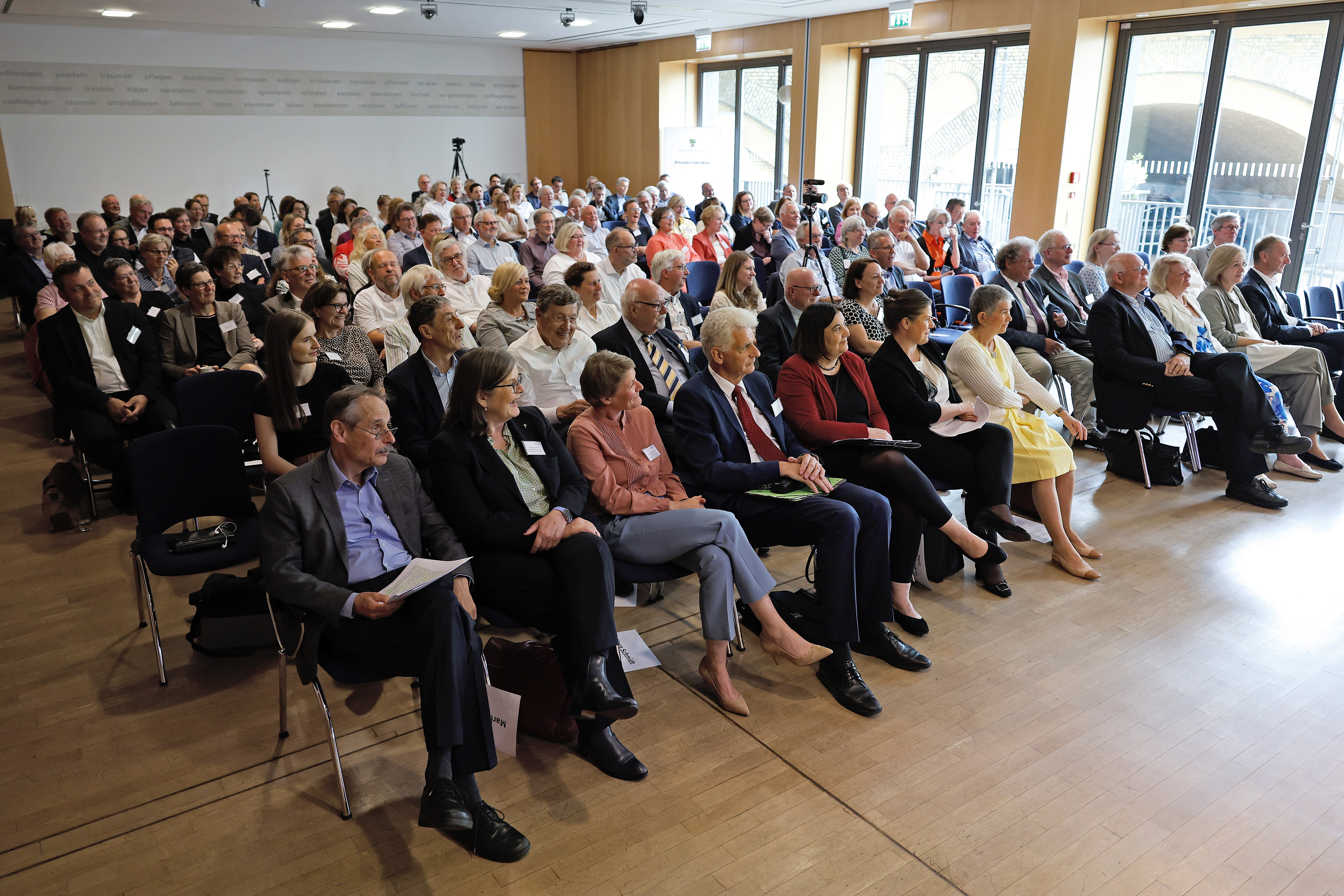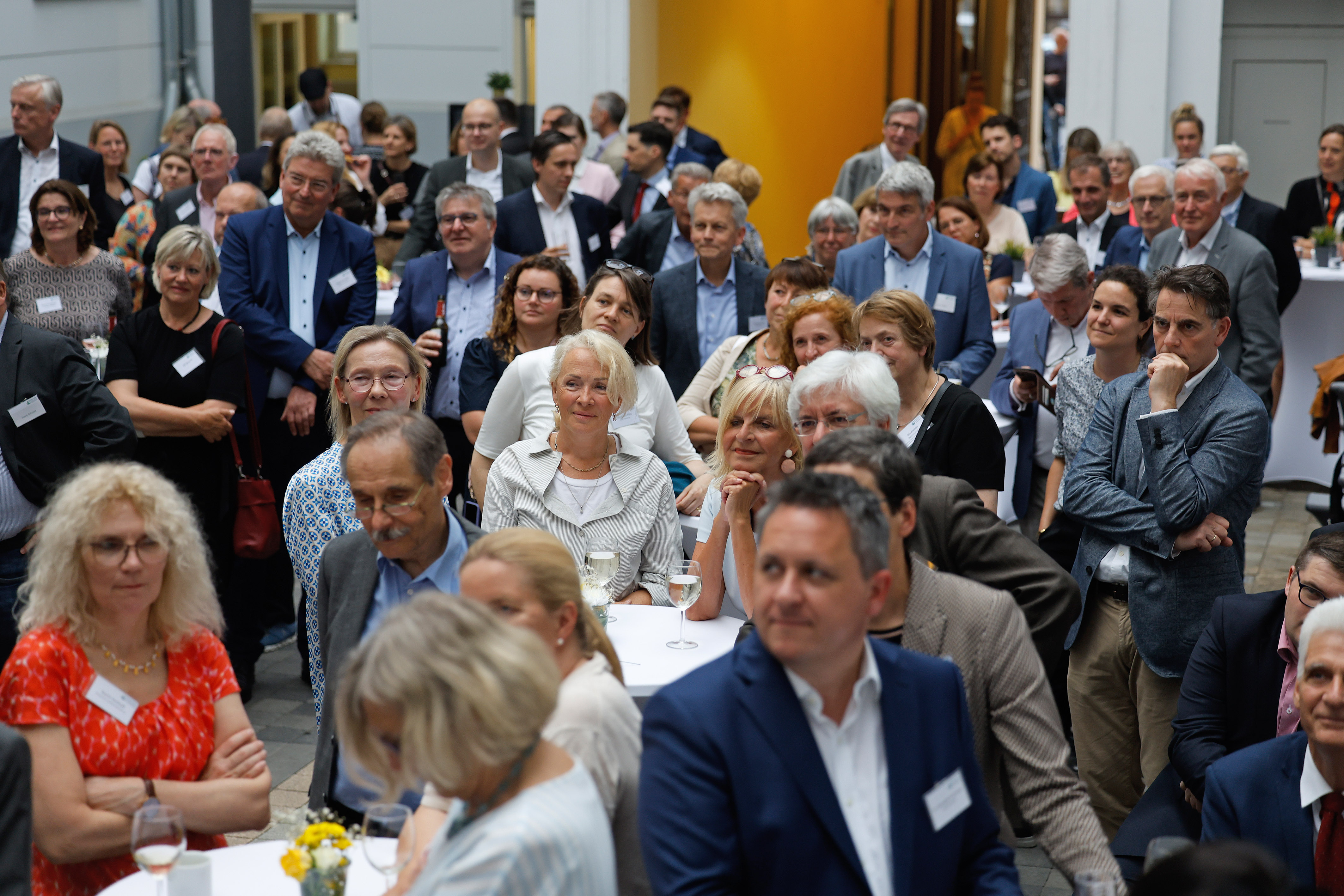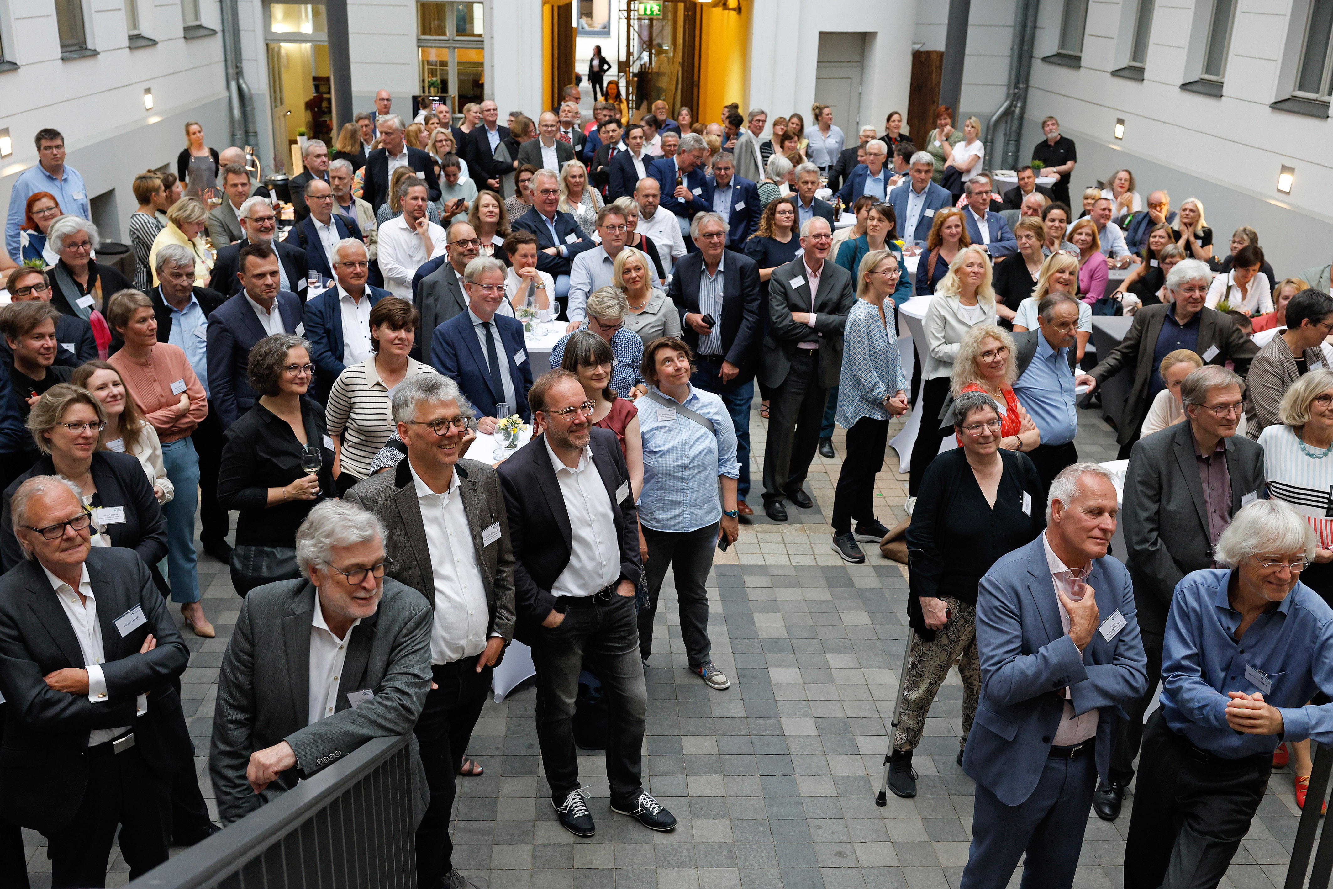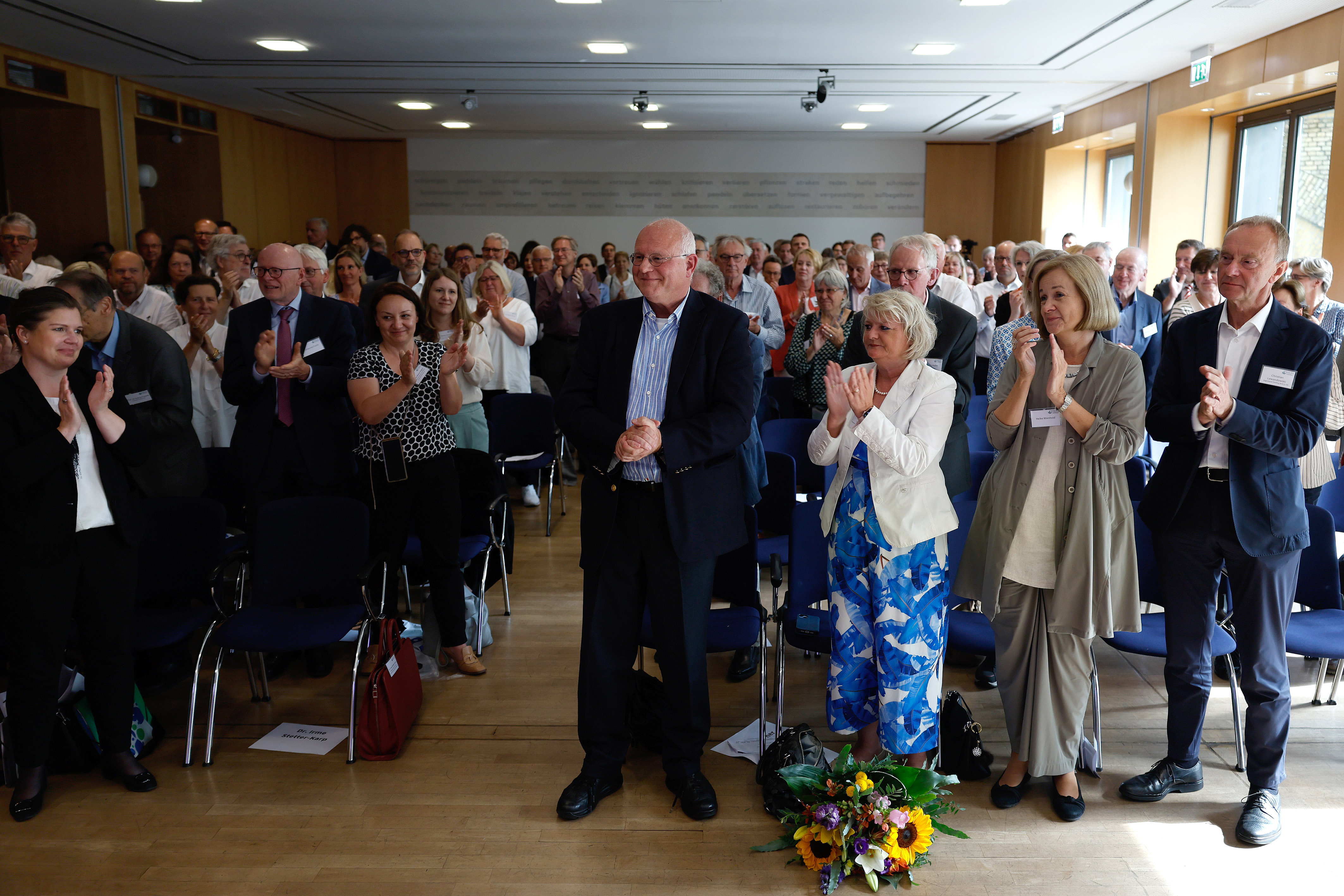 Im Anschluss an die Fachveranstaltung hatten die Gäste die Gelegenheit zum Austausch und persönlichen Gesprächen mit Michael Löher. In einem von Dörte Maack moderierten Gespräch würdigten die amtierende Präsidentin Dr. Irme Stetter-Karp und die ehemaligen Präsidenten Dr. Konrad Deufel, Wilhelm Schmidt und Johannes Fuchs die langjährige Tätigkeit von Vorstand Michael Löher.